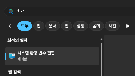 1-3. windows 키를 눌러서 '시스템 환경 변수 편집' 에 들어간다.